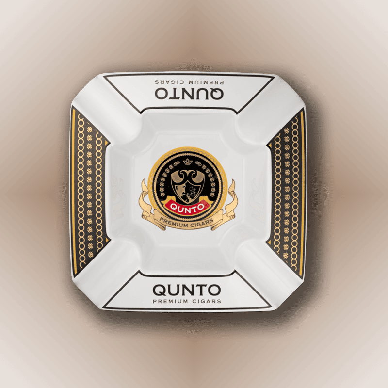 Klarer Auftritt in Weiss mit schwarzen Zierfeldern und feinen Goldornamenten. Das zentrale Wappen und die umlaufende Kontur geben dem Stück eine repräsentative Anmutung. Vier sorgfältig geformte Ablagen bieten verlässlichen Halt, der erhöhte Rand führt Asche sauber und ruhig. Eine elegante Wahl für den gepflegten Genussmoment.